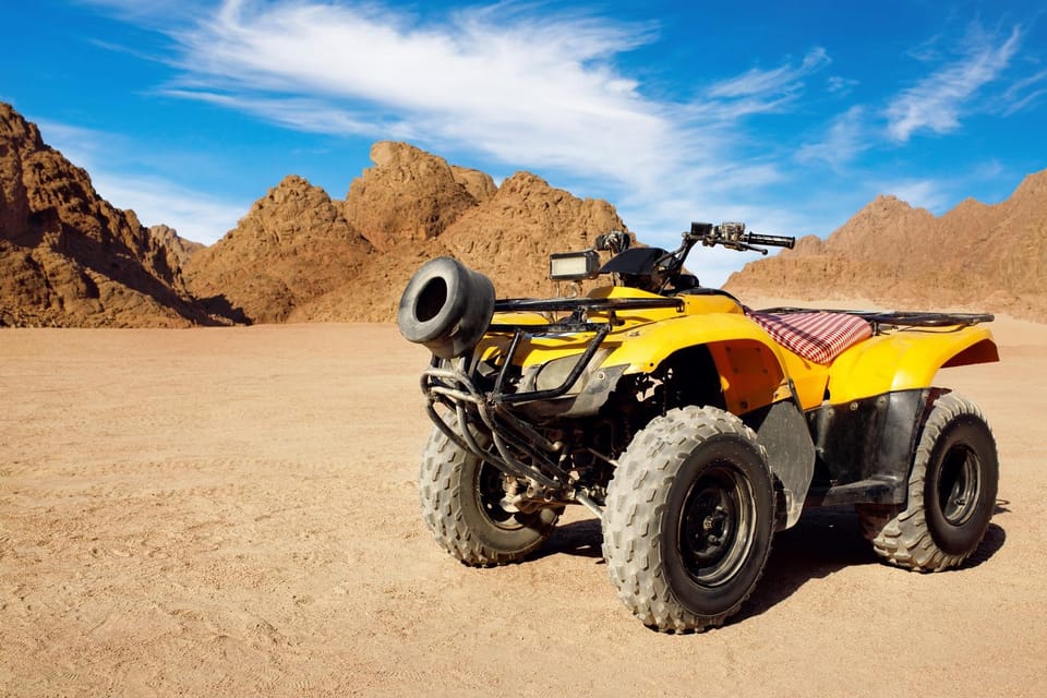 Sharm El-Sheikh veya komşu yerlerdeki otelinizden ayrıldıktan sonra, turun dörtlü bisiklet bölümünün başlangıcına doğru ilerleyin. Varışta, sizi Sina Çölü'ne götürecek profesyonel rehberinizle tanışın. Dörtlü bisikletlerinizde kumlu arazileri geçerken nefes kesen gündoğumları ve gün batımını yaşayın.